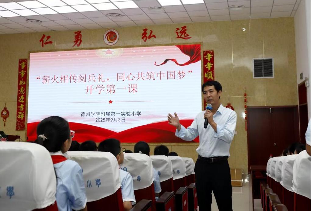 9月3日上午,党委委员、副校长徐静到122cc太阳集成附属第一实验小学参加主题为“薪火相传阅兵礼,同心共筑中国梦”的开学第一课。天衢新区教体卫生事业发展部负责人韩立敏、全国劳动模范、大国工匠程平等参加活动。