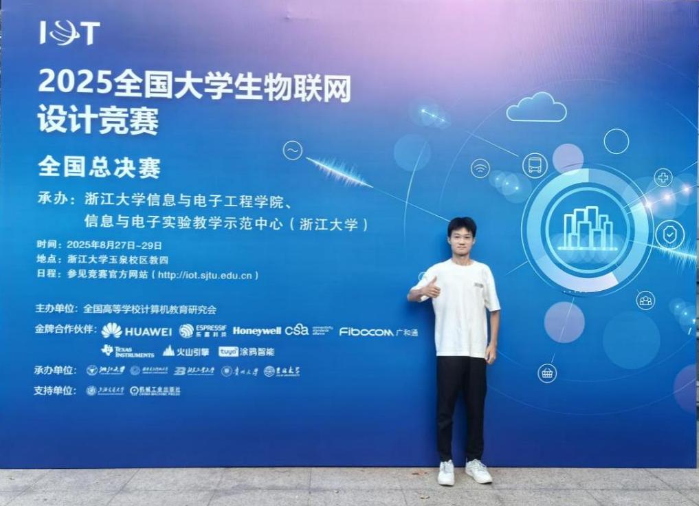 近日,2025年全国大学生物联网设计竞赛全国总决赛在浙江大学举行。太阳成官网由董文会老师指导的任逢瑜、贾方龙、赵誉和巩佳琪团队首次参赛即获得全国总决赛一等奖1项。