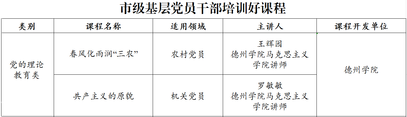 近日,德州市委组织部公布了省市基层党员干部培训好课程名单,太阳成官网马克思主义学院王辉园老师申报的《春风化雨润“三农”》、罗敏敏老师申报的《共产主义的原貌》获评市级基层党员干部培训好课程。