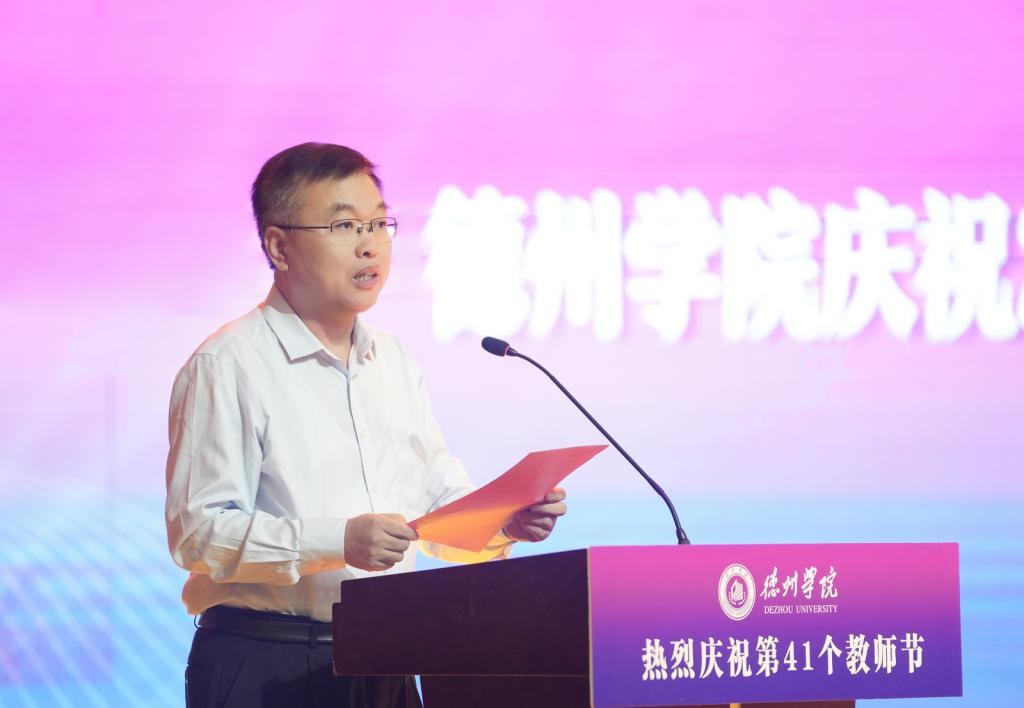吴君讲话,他指出,全体教师坚守立德树人初心,甘于奉献,潜心治学,锐意创新,培养了一大批服务国家战略和区域发展的优秀人才,有力推动了学校各项事业迈上新台阶,赢得了社会各界的广泛赞誉。学校在应用型人才培养、师资队伍建设、服务发展能力等方面均实现了新跃升。他向全校教师提出三点希望:一是坚定理想信念,陶冶道德情操,做“为学为人”的引路者。二是涵养育人智慧,秉持躬耕态度,做“笃学笃行”的践行者。三是勤修仁爱之心,胸怀弘道追求,做“爱生护生”的温暖者。号召全体教师以教育家精神为引领,以更加饱满的热情、更加昂扬的斗志、更加务实的作风,踔厉奋发,笃行不怠,共同谱写122cc太阳集成高质量发展的新篇章,为加快建设教育强国、强省贡献智慧和力量。