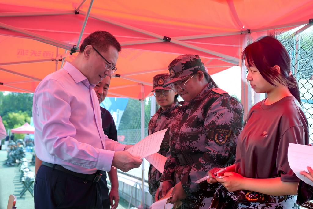 吴君强调,军事训练是落实立德树人根本任务的重要环节,要求相关部门强化全程管控、细化安全预案、优化资源配置,形成保障合力,全面加强管理服务效能,同时,将思想政治教育融入国防教育中,实现铸魂与强能相统一,为培养有理想敢担当能吃苦肯奋斗的新时代好青年搭建坚实的作风锤炼平台。