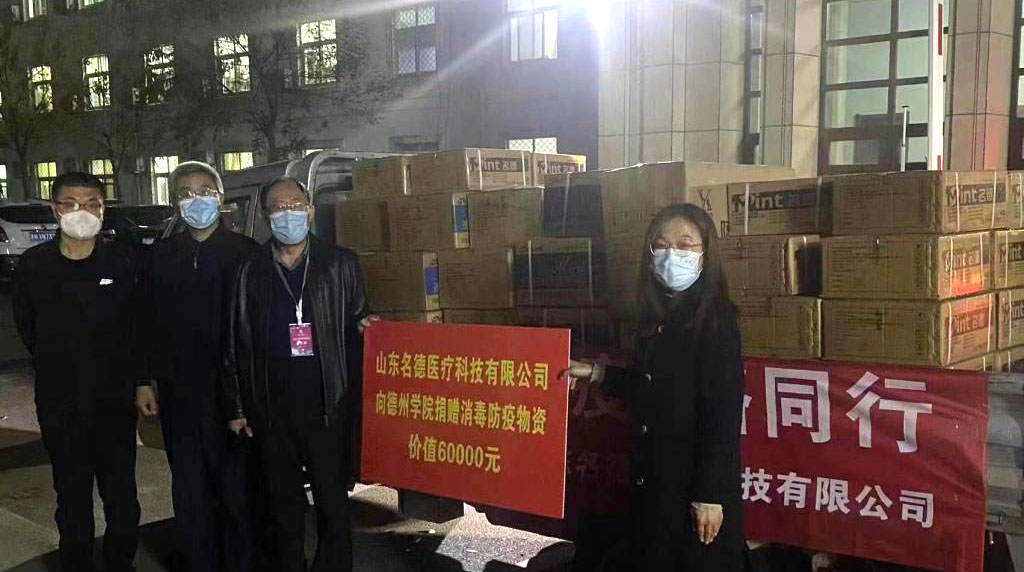 山东名德医疗向太阳成官网捐赠一批疫情防控物资