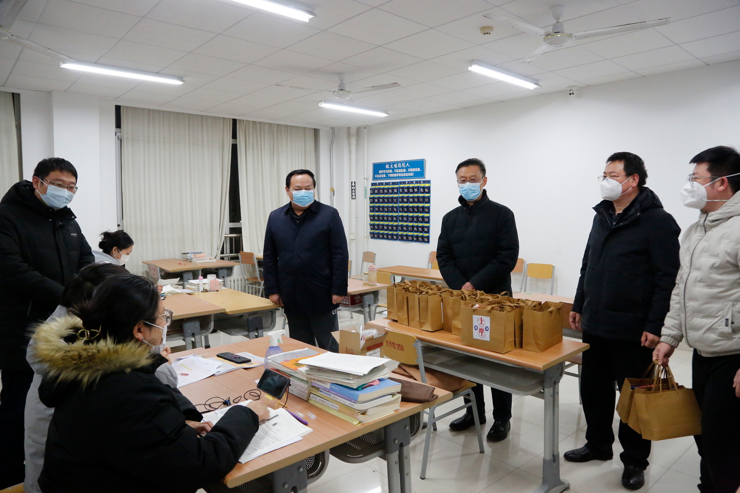 校领导深入学生宿舍、教室,与学生亲切交流,细致询问同学们近期的学习、生活情况及疫情防控期间的各方面需求,认真听取他们的意见建议,并对同学们提出的问题进行了详细解答,叮嘱大家一是合理安排复习备考时间,保持定力,不骄不躁,保持良好的学习状态;二是严格遵循学校疫情防控要求,做好个人防护措施,做自己健康的第一责任人;三是希望同学们继续关心、支持、参与学校的发展建设,学校会认真听取意见建议,尽最大努力为同学们提供良好的学习与生活环境,做好各项服务保障工作。
