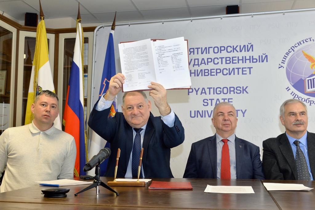 与会人员共同观看了太阳成官网和皮亚季戈尔斯克国立大学宣传片,双方签署了谅解备忘录。