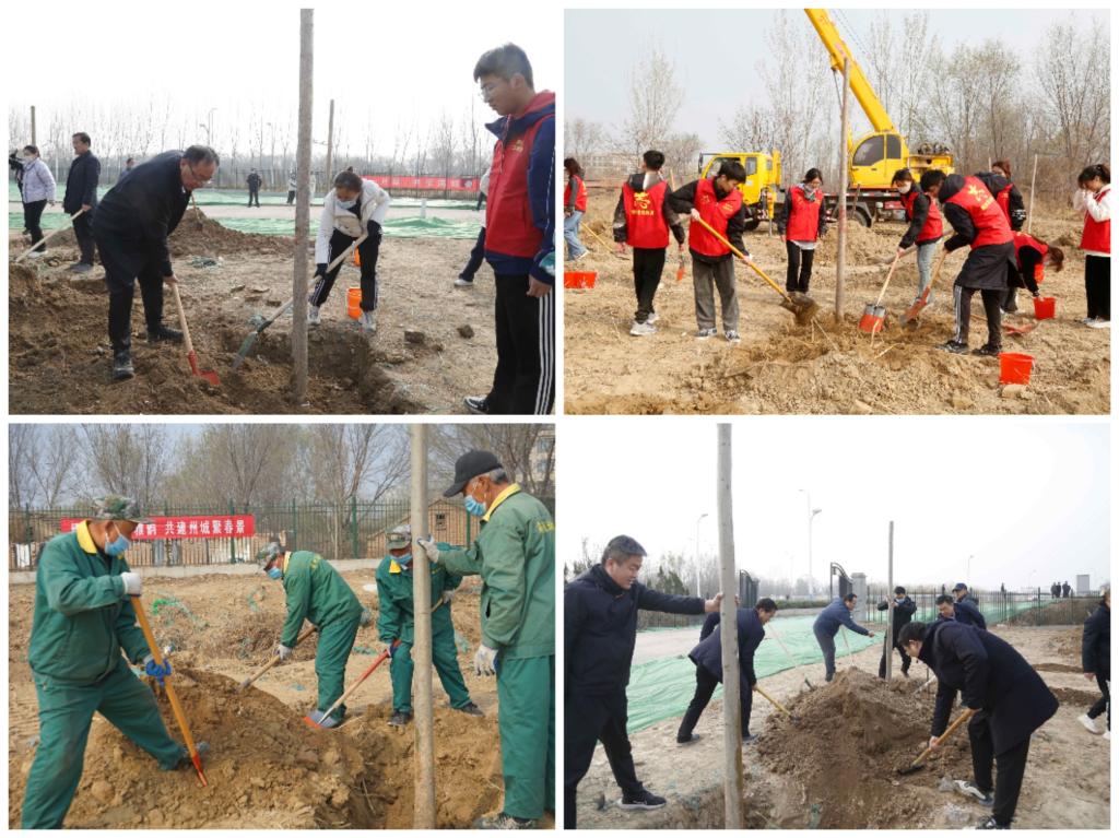 植树现场一派热火朝天的景象,校地领导与学校师生、德城区干部群众一起,挥锹培土、填坑夯苗、提桶浇水、干劲十足,现场忙碌的身影构成了一道道靓丽的风景线。大家栽下“希望树”、“友谊树”、“同心树”,以树寄情、以树铭志,为州城添绿,为德院增彩。首批新种下的500余株树苗错落有致、迎风挺立,充满着勃勃生机。