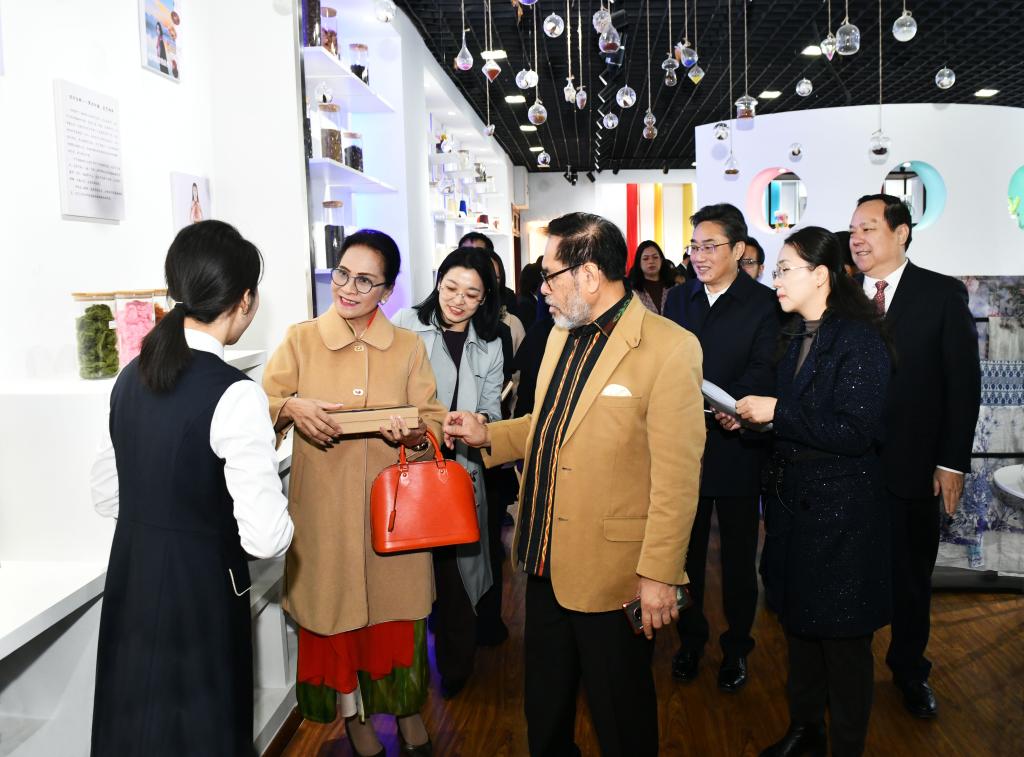 周浩黎、史忠俊一行沿途参观了美丽的校园风光,重点参观了国家纺织面料馆德州分馆、东盟研究中心、美术楼“中印尼友好”艺术作品展,学校相关人员向来宾介绍了纺织服装专业的发展和面料的工艺制作等情况,在东盟研究中心双方就开展交流活动进行了深入探讨,大使一行在美术楼“中印尼友好”艺术作品展对传统的剪纸和黑陶艺术产生了浓厚兴趣,最后大家在厚德楼前进行了合影留念。