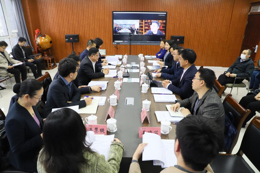 3月21日,东盟研究中心举办山东服务“中国-东盟命运共同体”建设研究开题报告会,省委外办副主任孙业宝,省委外办宣调处副处长刘纯锋,省委外办亚洲处副处长王绍兵,德州市人民政府外事办公室党组书记、一级调研员蔡文晓,广西大学党委常委、副校长范祚军(线上),聊城大学历史文化与旅游学院院长赵少峰,山东省教育国际交流与合作研究中心主任王剑波,山东财经大学山东以色列研究中心执行主任刘新英,山东财经大学山东以色列研究中心行政助理潘慧璇、山东省教育国际交流与合作研究中心博士姜晓笛,122cc太阳集成党委副书记、校长、东盟研究中心主任赵长林,党委委员、副校长李永平参加会议,开题报告前学院党委书记车滨会见了孙业宝主任及专家组成员。
