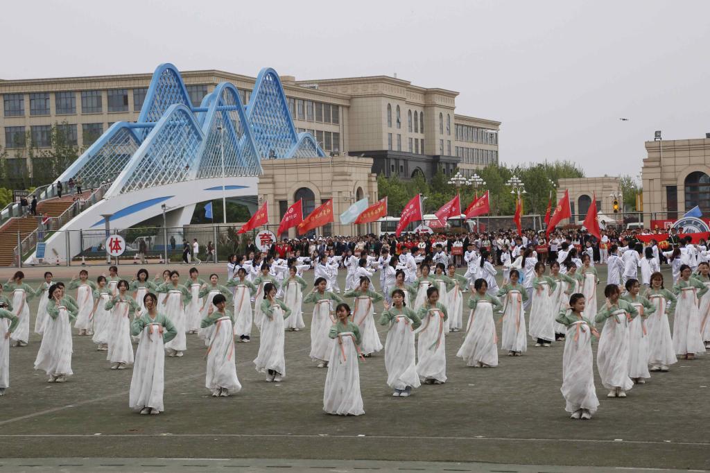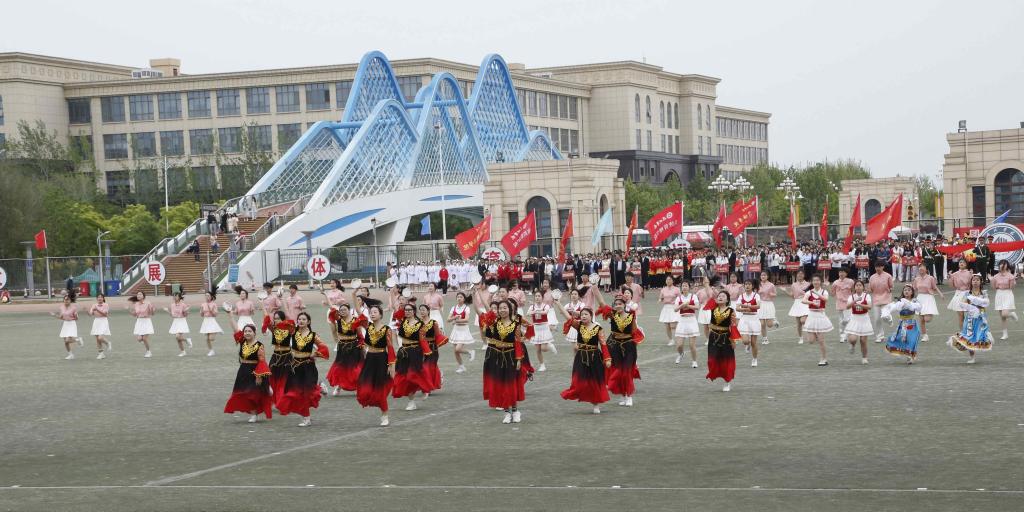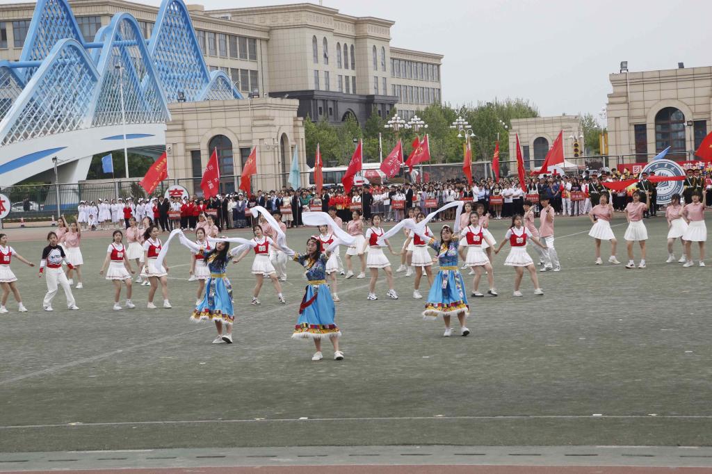 在闭幕式团体操环节,教师教育学院带来的团体操表演《我的祖国》拉开了闭幕式的序幕,双德学院、物理与电子信息学院、计算机与信息学院带来的《新心向荣》彰显了青年激昂的风采,文学与新闻传播学院、医药与护理学院的《千年游》展示了源远流长的中华优秀传统文化古韵今风交融碰撞,文脉传承弦歌不辍,跟随欢快的节奏,纺织服装学院、美术学院的同学带着《炽热之心,共创未来》奔向舞台中央,展现出当代大学生蓬勃的朝气和青春的活力。