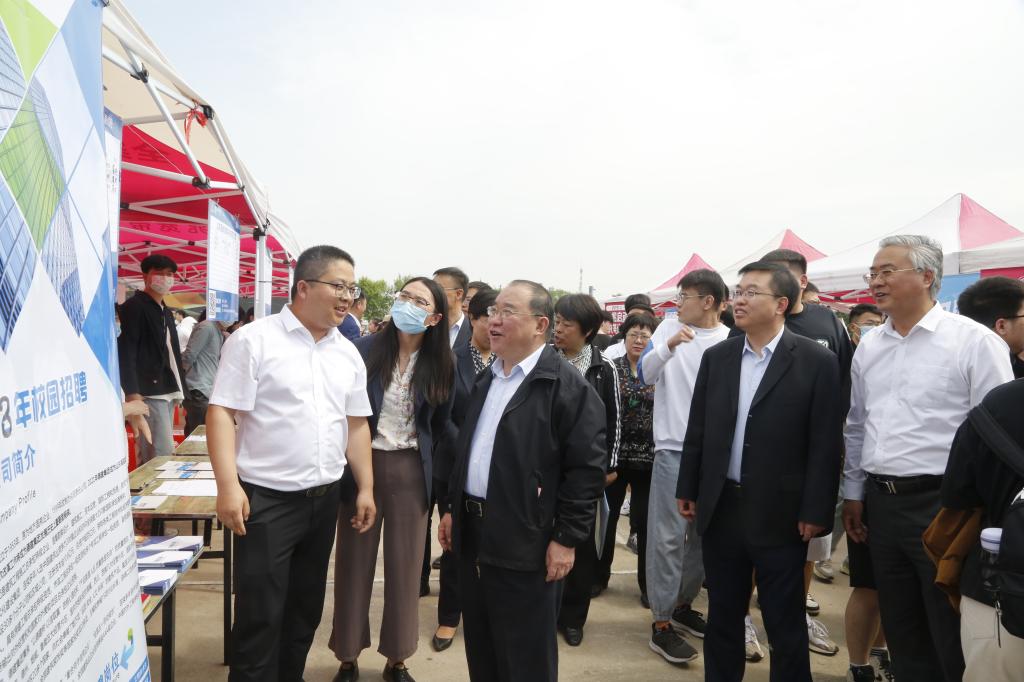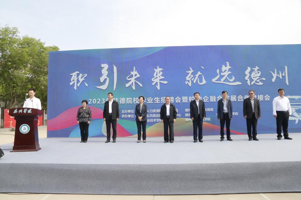 为加快实施“三年十万大学生兴德计划”,推动毕业生留德就业创业,5月11日,“职引未来·就选德州”2023年驻德院校毕业生招聘会暨校地企融合发展合作对接会在太阳成官网举行。市政府党组副书记、一级巡视员刘长民,市政府副秘书长周艳国,市委组织部副部长,市人社局党组书记、局长郭洪霞,市教育和体育局总督学王俊臣,太阳成官网领导赵长林、迟沂军、任立春及驻德高校相关负责人出席招聘会。招聘会由周艳国主持。