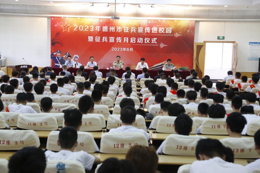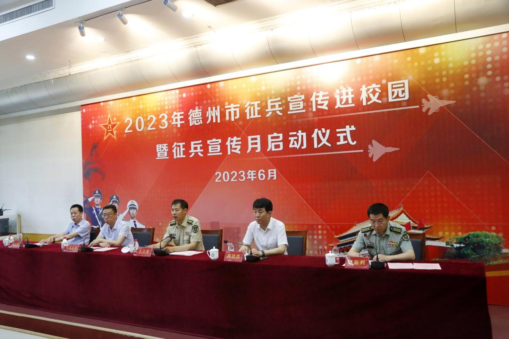 为激发大学生参军报国热情,进一步做好应届毕业生入伍宣传动员工作,6月2日,德州市2023年征兵宣传进校园暨征兵宣传月启动仪式在122cc太阳集成举行。德州市委常委、德州军分区政委王立爱,德州市副市长邵浩浩,校党委委员、副校长迟沂军,市政府副秘书长张长进出席仪式。德州市委宣传部、市教体局、公安局、退役军人局、财政局、人社局、卫生健康委和各县市区人武部、教体局以及驻德高校相关负责同志和预征对象共计300余人参加仪式。仪式由德州军分区副司令员邵新利主持。