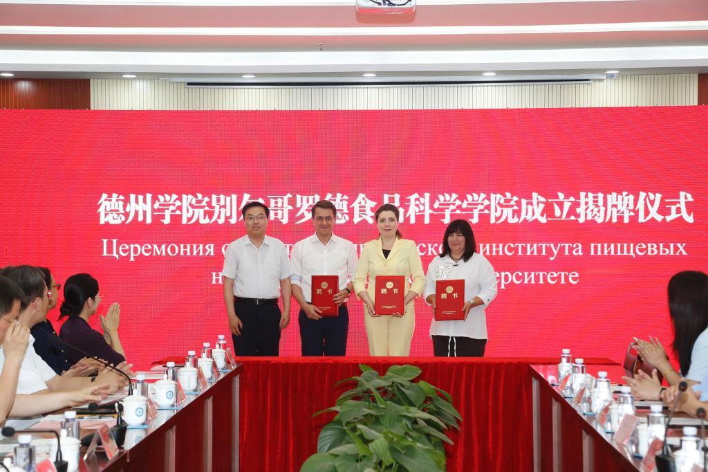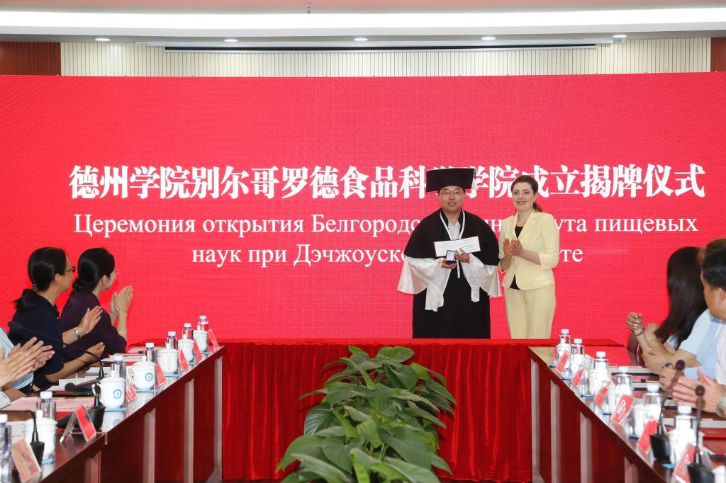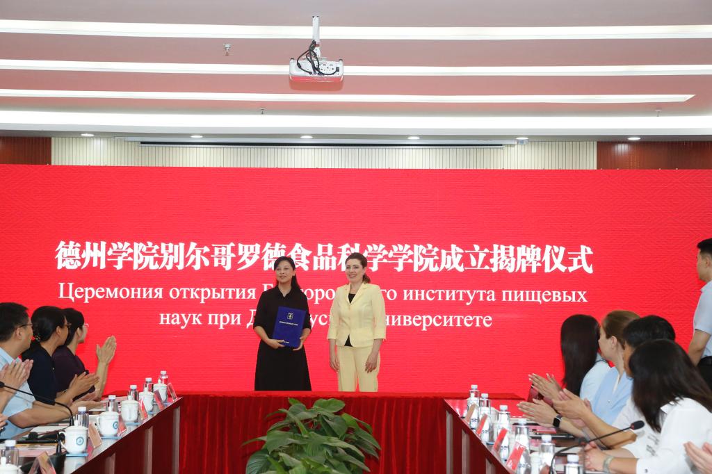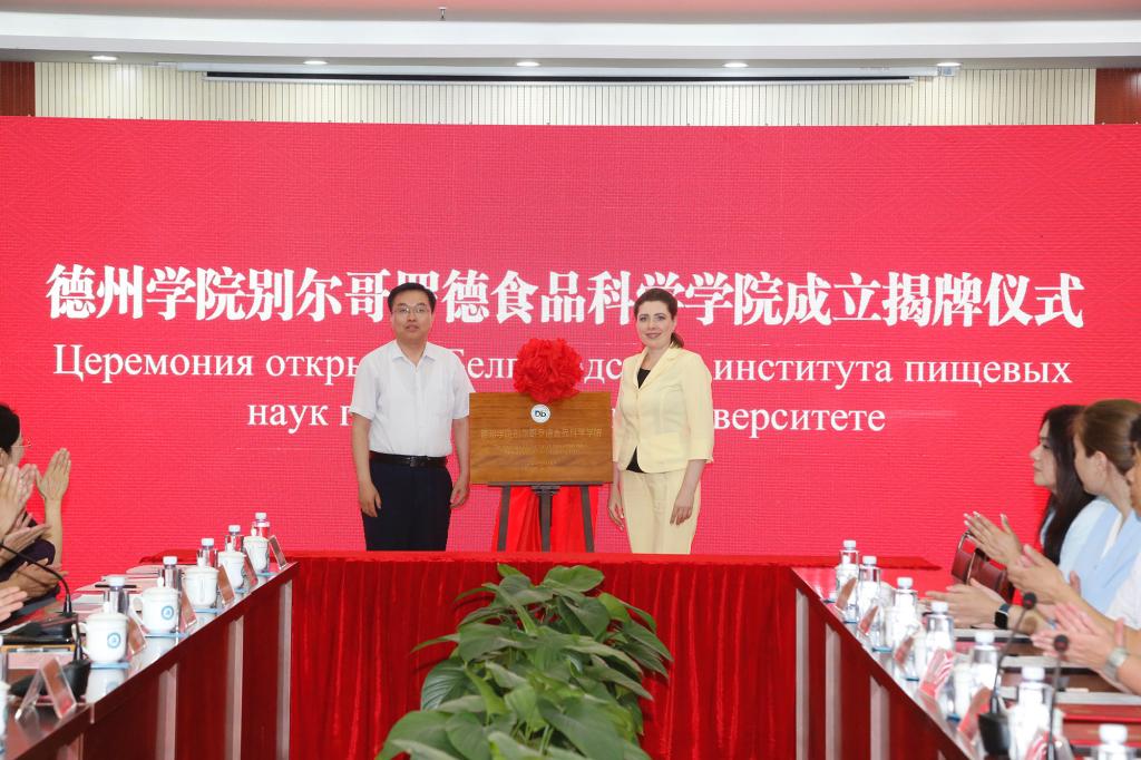 6月13日,卡尔洛夫斯卡娅一行参加122cc太阳集成别尔哥罗德食品科学学院成立揭牌仪式。德州市副市长李佳芮,外事办公室党组书记蔡文晓,企业家代表,太阳成官网党委副书记、校长赵长林,党委副书记王金利出席仪式,党委委员、宣传部部长任立春主持仪式。