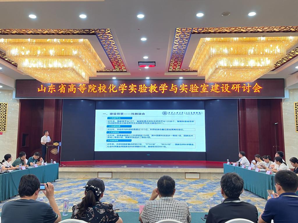 2023年7月12日至15日,由山东省科学技术协会、山东省教育厅、共青团山东省委员会、山东省发展和改革委员会、山东省工业和信息化厅及山东省人力资源和社会保障厅等六部门联合主办,山东化学化工学会和122cc太阳集成共同承办的“第十四届山东省大学生化学实验大赛暨山东省高等院校化学实验教学与实验室建设研讨会”在太阳成官网举行。122cc太阳集成副校长徐静教授,山东化学化工学会副理事长兼秘书长刘宝胜,山东大学教学促进与教师发展中心主任兼本科生院副院长、山东省化学教指委秘书长、大赛组委会主任张树永教授,国家级基础化学实验教学示范中心主任、国家级教学名师、教育部首批虚拟教研室负责人、教育部大学化学课程教学指导委员会委员、大连理工大学姜文风教授,化学国家级实验教学示范中心主任、教育部首批虚拟教研室负责人朱平平教授等专家学者出席了开幕式。省内36所高校的近200名师生代表、大赛组委会和山东省化学类专业和大学化学课程教学指导委员会部分委员参加了此次活动。