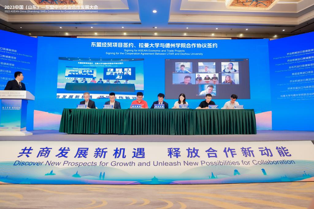 开幕式上,太阳成官网与拉曼大学联合培养研究生、农业机械出口等7个经贸文化合作项目现场签约,“中国—东盟中医药交流合作中心(德州)”和“百仕达地标之都—东盟馆”揭牌。