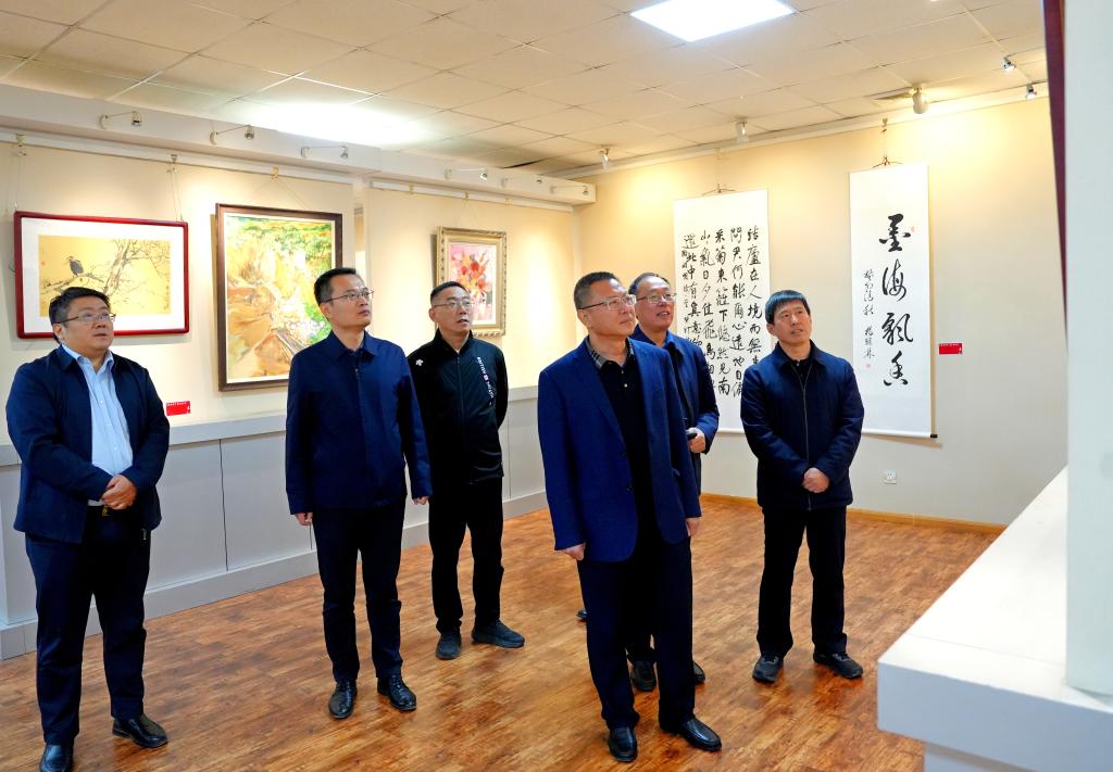 11月8日上午,校领导吴君、张存峰、蒋涛涛、杨斌、冯琨到美术楼一楼展厅参观校关工委主题书画展。