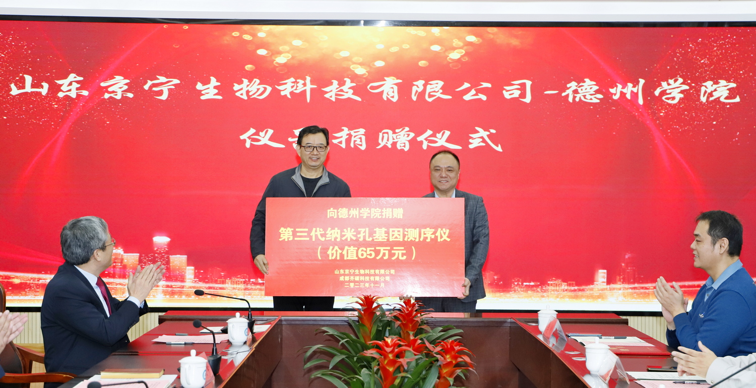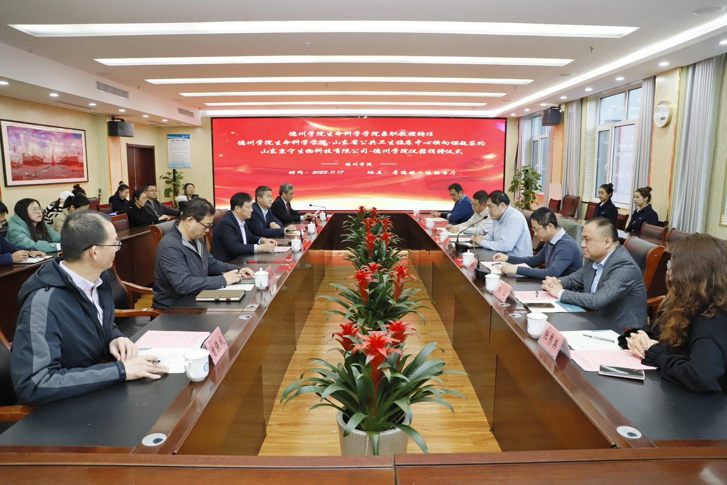 李甲亮致辞,强调学校与山东省公共卫生临床中心双方签署横向课题合同,山东京宁生物科技有限公司捐赠测序仪,充分体现了对太阳成官网的巨大帮助和支持,必将进一步提升太阳成官网生科院人才队伍、平台和科研能力建设水平,对太阳成官网创建地方性应用型高水平大学起到积极推动作用。希望各方今后紧扣学科建设、国家需求和地方发展,整合资源,相互交流,联合研发,以期实现融合发展、互利共赢。