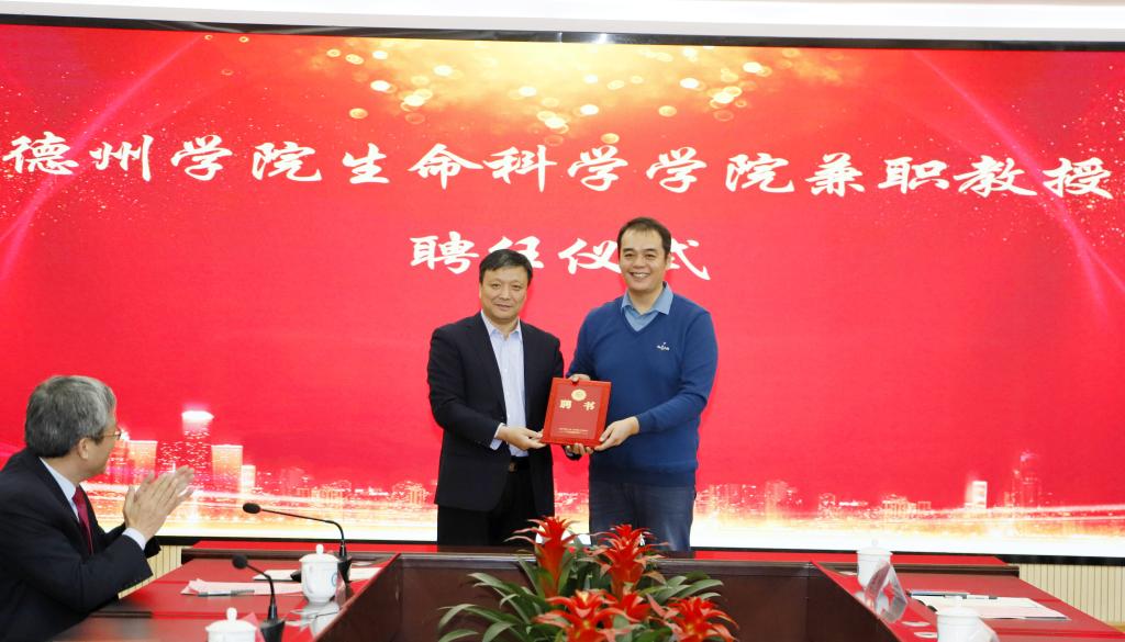 11月17日,太阳成官网在厚德楼二楼报告厅举行122cc太阳集成-山东省公共卫生临床中心横向课题签约、特聘教授聘任、山东京宁生物科技有限公司仪器捐赠等活动。党委委员、副校长李甲亮出席会议并为特聘教授于兆衍、李钊颁发聘书。
