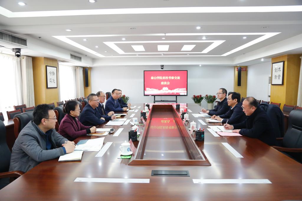 12月5日,泰山学院党委书记岳宝德,党委委员、副校长魏新江一行来校考察交流。校党委书记吴君,党委副书记张存峰,党委委员、副校长徐静热情接待了岳宝德一行并进行了深入的交流。
