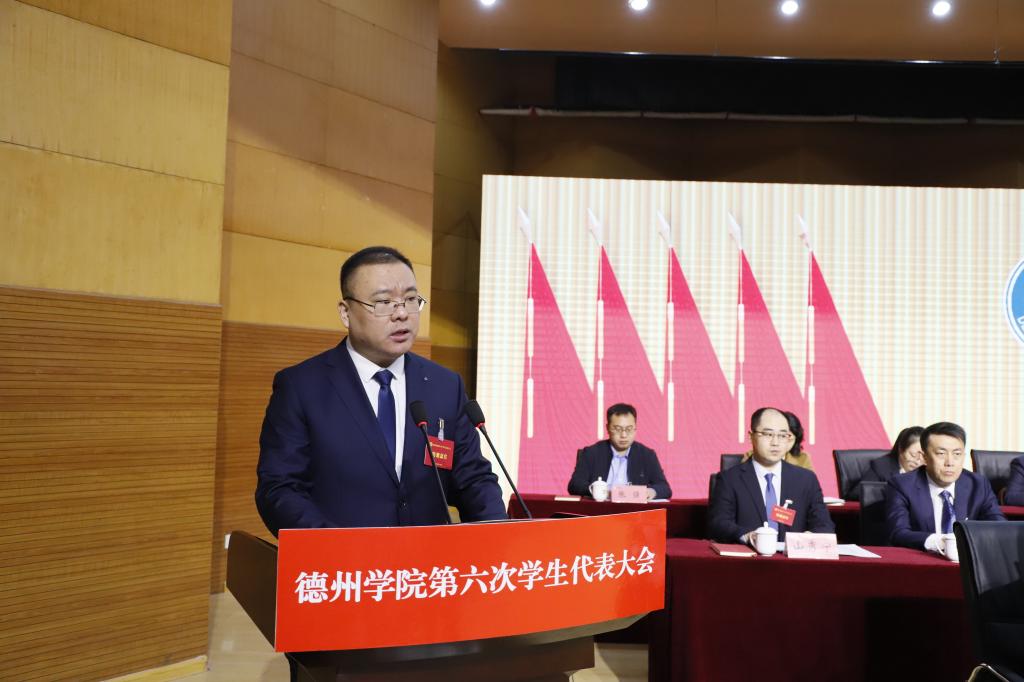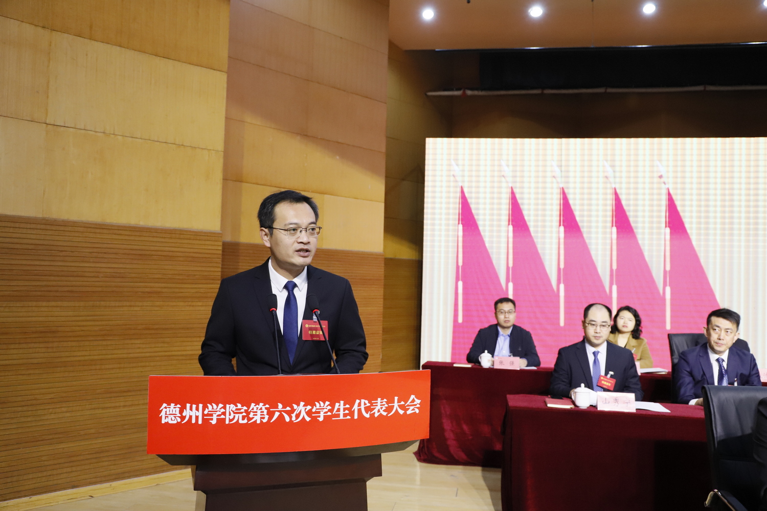 12月10日,122cc太阳集成第六次学生代表大会在音乐厅召开。党委委员、副校长蒋涛涛,共青团德州市委书记王俊程出席开幕式。