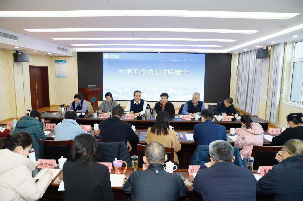 1月3日上午,学校大学工战线工作联席会在厚德楼二楼报告厅召开。学校党委委员、副校长蒋涛涛主持会议并讲话,党委委员、宣传部(教师工作部)部长冯琨参加会议。