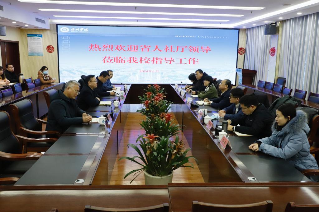 1月24日,山东省人力资源和社会保障厅党组成员、副厅长衣军强率队到校调研指导毕业生就业创业和大学生就业赋能中心建设推进情况。省人社厅就业促进处处长、一级调研员董廷杰,人力资源流动管理处处长、一级调研员张成仙,省公共就业和人才服务中心主任、就业服务处处长张波参加调研。学校党委副书记、校长赵长林,党委委员、副校长蒋涛涛参加活动。