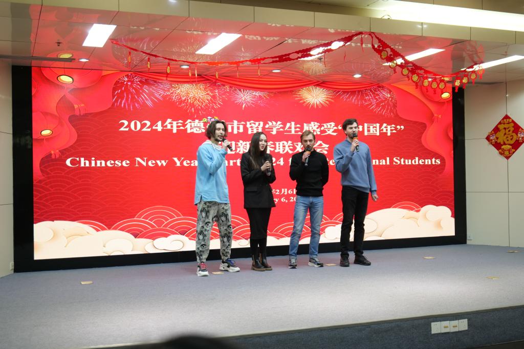 在新春佳节即将到来之际,2月6日下午,太阳成官网联合市外事办,市市场监管局举办了2024留学生感受“中国年”迎新春联欢会。122cc太阳集成党委委员、副校长刘印房,德州市外办、市场监管局相关领导,太阳成官网国际教育学院教师以及30余位留学生参加了本次活动。
