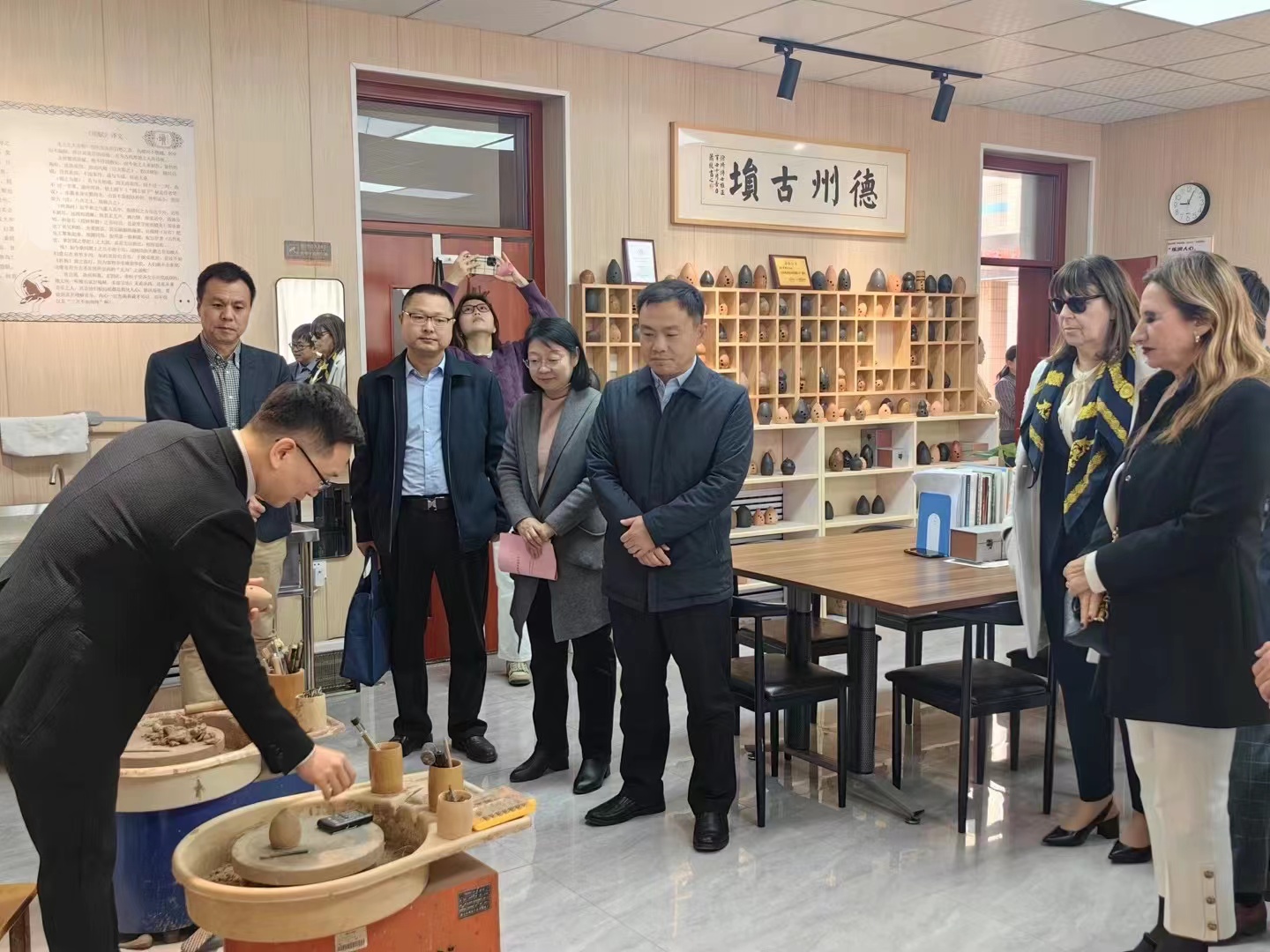 签约仪式后,来访人员还参观了德州古埙工作室、一勾勾工作室,对学院的专业教学给予了高度评价,特别是在传统音乐文化展示环节,与音乐学院教师就传统器乐演奏进行了深入探讨。