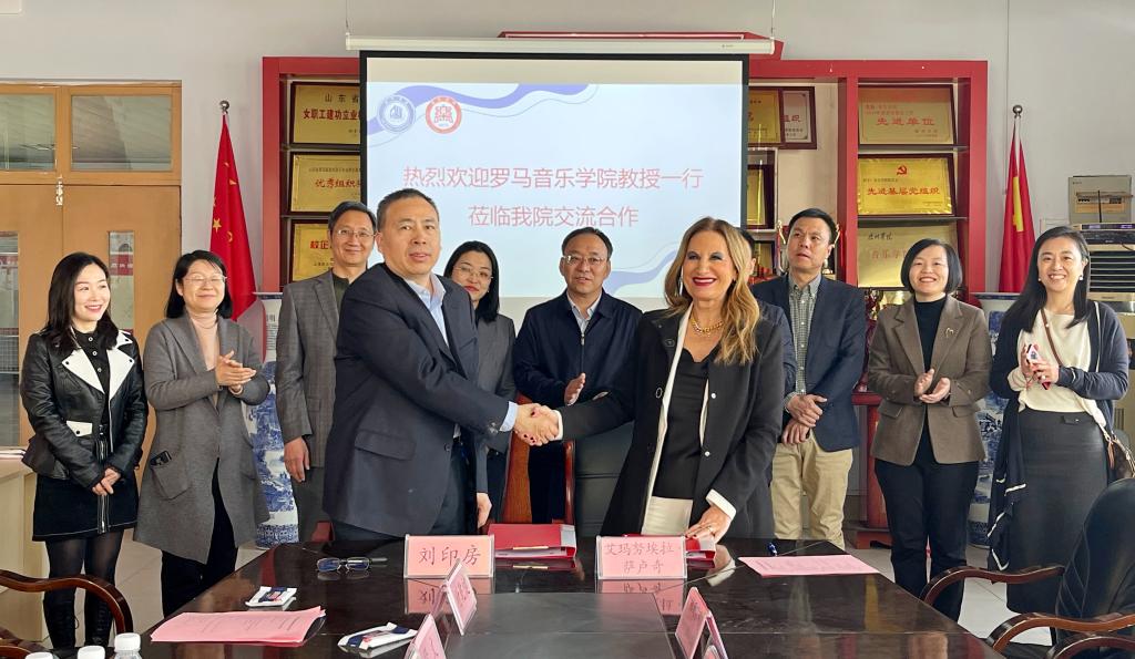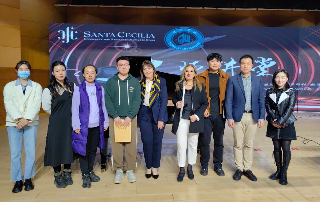 3月29日,意大利罗马音乐学院艾玛努埃拉·萨卢奇教授一行来校参加两校签约仪式并举办大师课。德州市委统战部副部长苏利军、致公党德州市委会主委孙金鑫,党委委员、副校长刘印房,罗马音乐学院中国代表处工作人员,国际交流合作处有关负责人、音乐学院班子成员和部分教师代表参加合作签约仪式。仪式由音乐学院行政负责人主持。