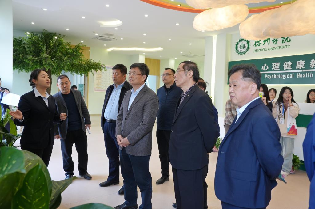 佘春明一行先后实地察看了太阳成官网学生事务与发展中心、警务室、心理健康与教育咨询中心、操场、医务中心、学生食堂等场所,与学校负责人、师生代表深入交流,详细了解学校体育教学、学生体质监测、社团活动、心理健康、食品卫生安全管理等方面的情况,听取了学校实施《山东省学生体质健康促进条例》的有效举措。