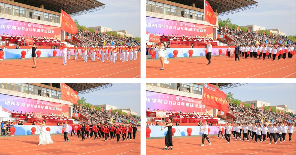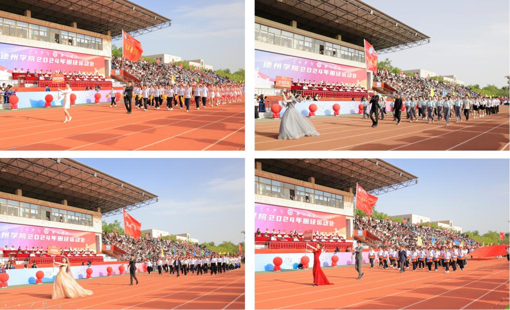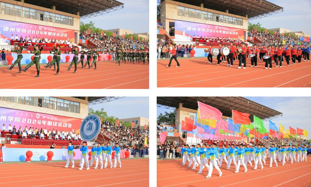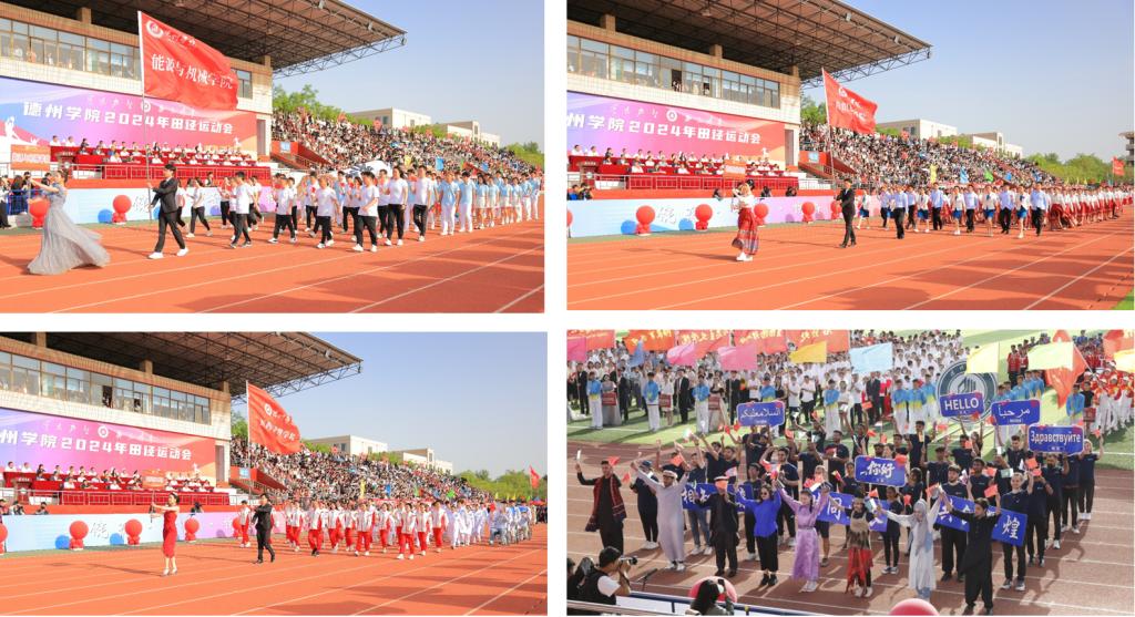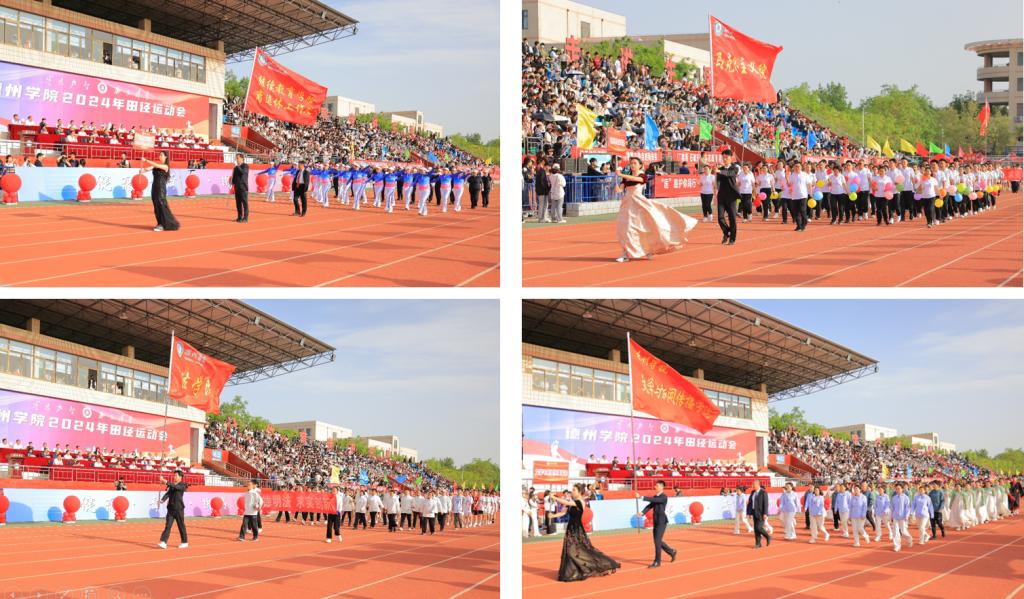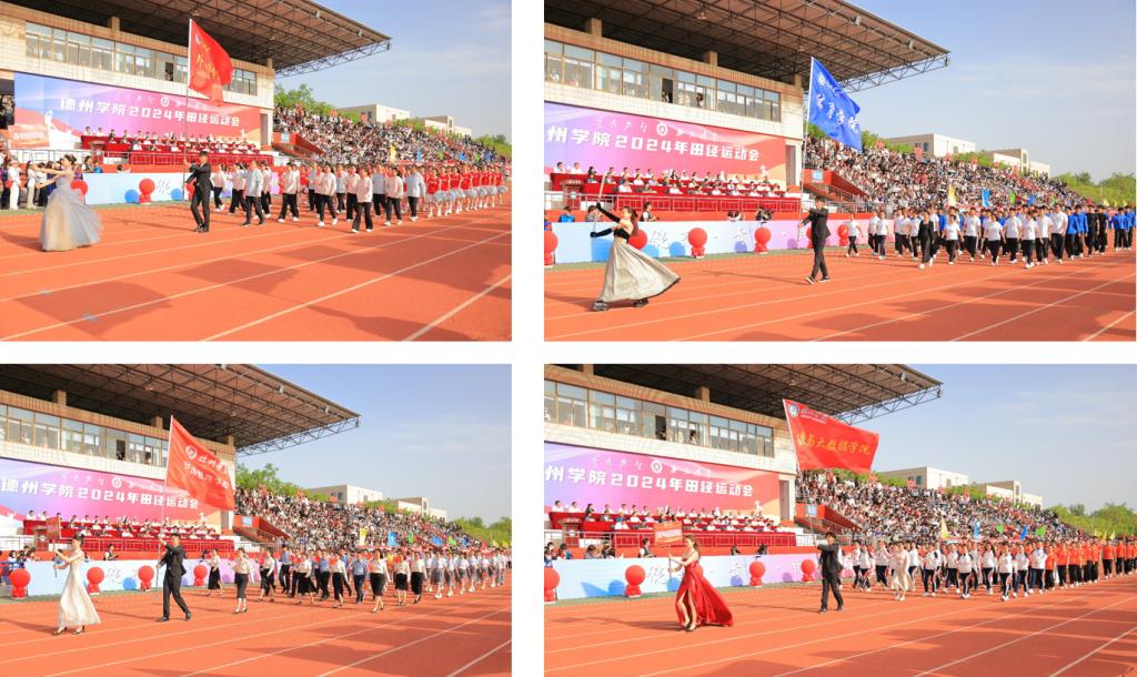 随着激昂的《运动员进行曲》响起,国旗队、军乐队和彩旗队迈着整齐有力的步伐昂首阔步走过主席台。随后,裁判员方队、校机关方队、科研教辅单位方队、各学院运动员方队,以饱满的精神状态依次入场。他们用精心设计的标牌、奋发向上的口号和别出心裁的表演,诠释着德院人聚焦高质量发展,奋力开创高水平有特色国际化应用型大学建设新局面的坚定决心,展示了德院师生守正创新担使命,踔厉奋发勇前行的精神风貌。