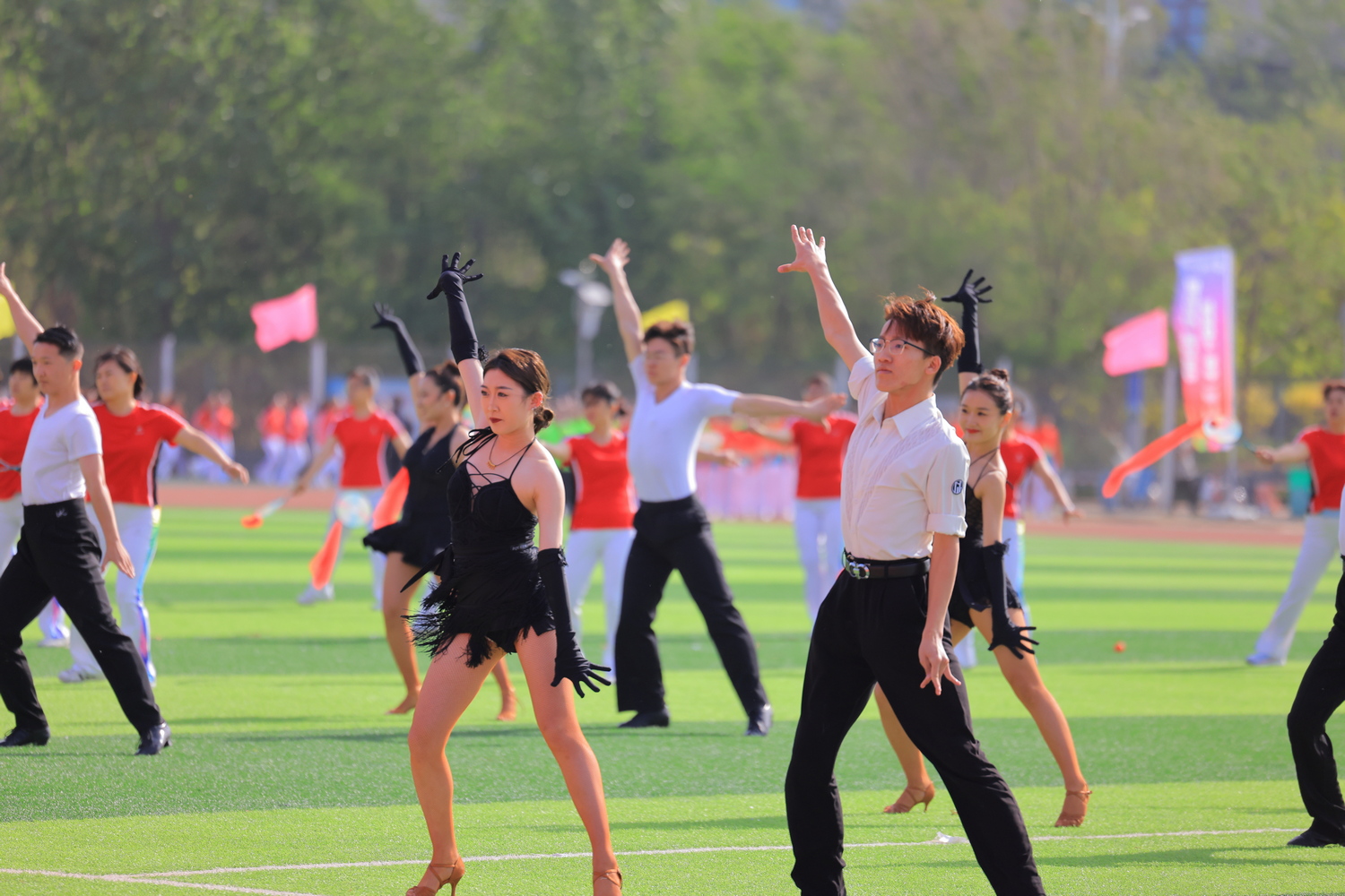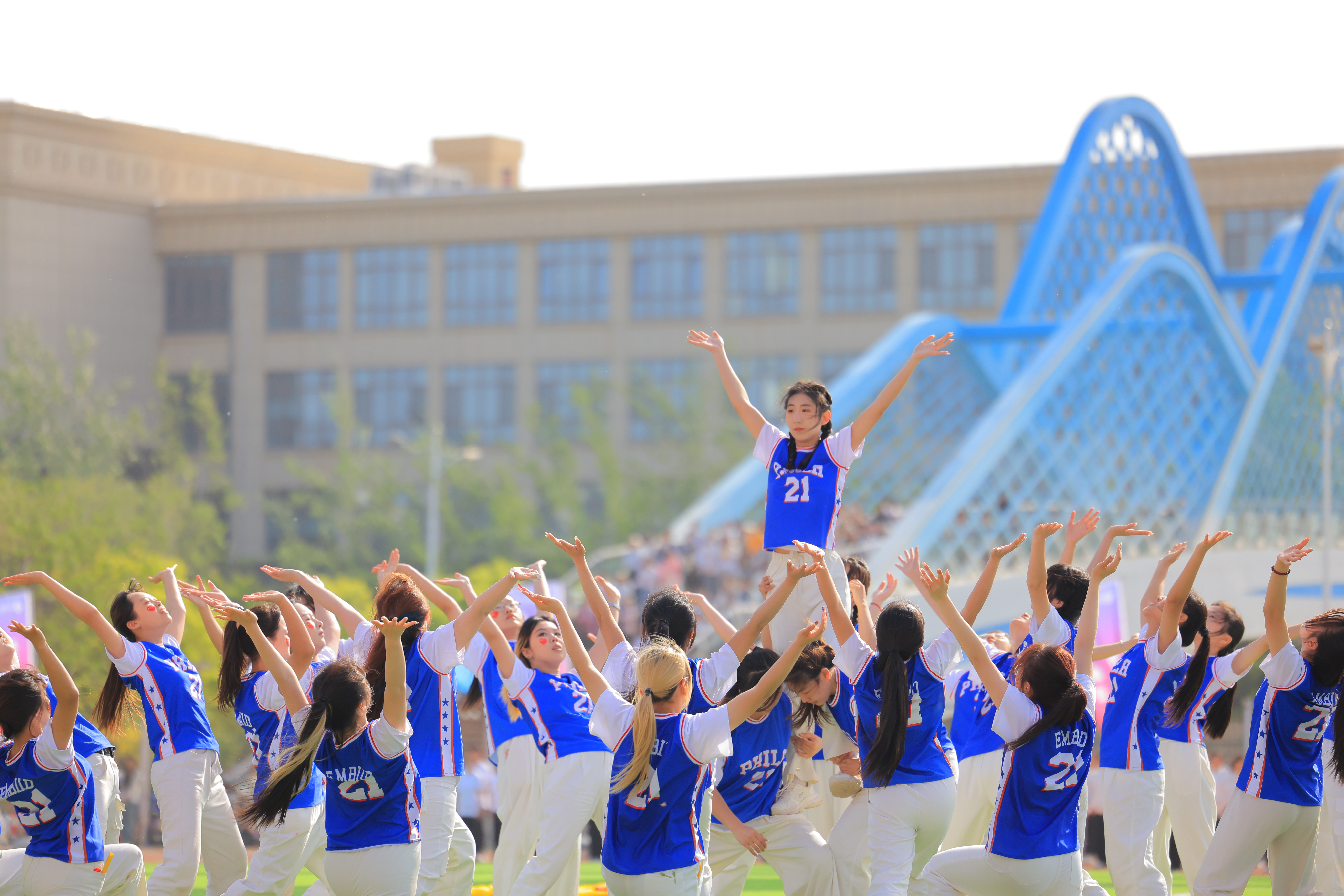 由学校老年大学退休教师和在校学生共同表演的《祖国不会忘记》拉开了表演阶段的序幕,传承美好、律动青春在这里交织;“柔”出活力、“舞”动青春的《灵动舞韵》将柔力球和拉丁舞巧妙搭在一起,点燃了灵动与激情;音乐在跳动,青春在飞扬,《点燃青春》将啦啦操与街舞、爵士、古风碰撞出不一样的火花;18个院系共同完成的节目《千人广播操》充满了青春的朝气,展示了团结协作、昂扬向上的精神风貌。