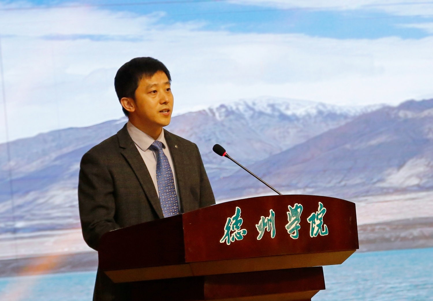 会上,鲁喀专项服务队指导教师、计算机与信息学院王传翔老师和“挑战杯”国赛获奖代表、物理与电子信息学院李嘉慧同学进行发言。
