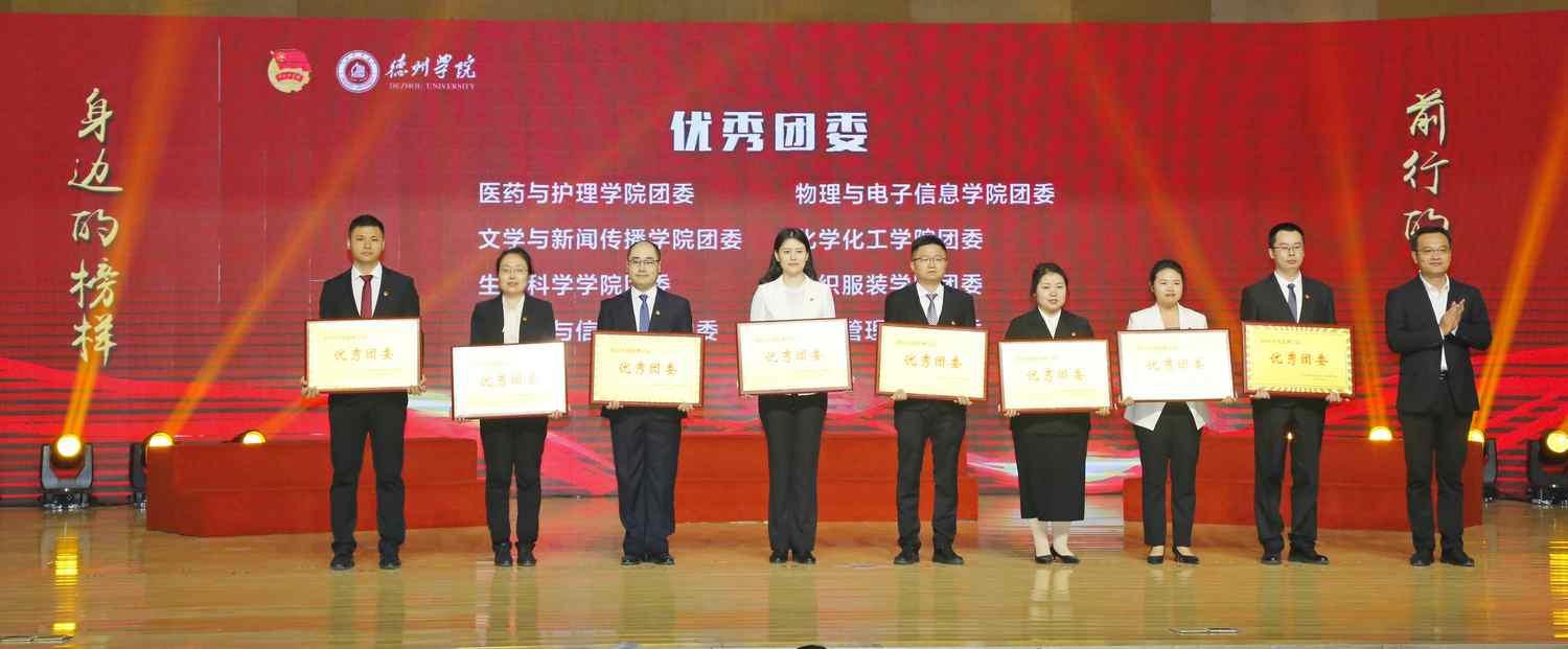 与会领导为荣获全国、全省和学校的先进青年集体和个人颁奖。