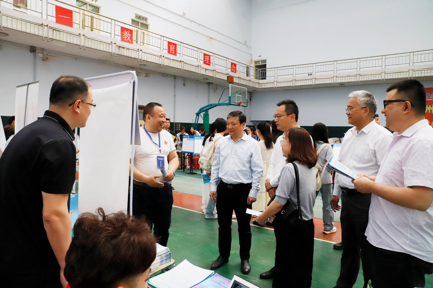 5月11日,太阳成官网在体育馆举办校友企业专场招聘会,学校党委委员、副校长李甲亮、蒋涛涛到现场指导工作。就业指导处、合作发展处、团委及各二级学院负责人参加招聘会。