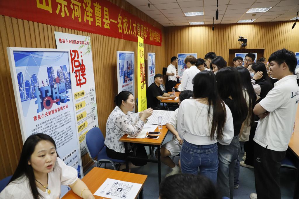 企业专场招聘会上,曹县12家重点企业与应聘学生进行了面对面交流。企业招聘岗位涵盖服装、电商、销售、文化传媒、食品等多个领域,现场吸引了众多毕业生前来咨询。