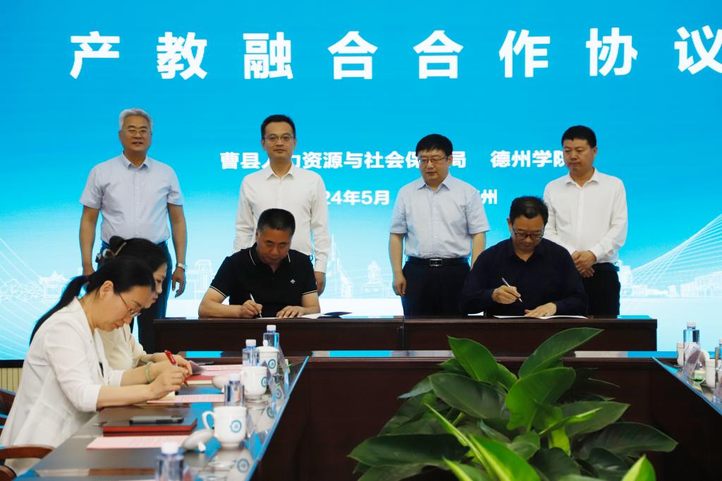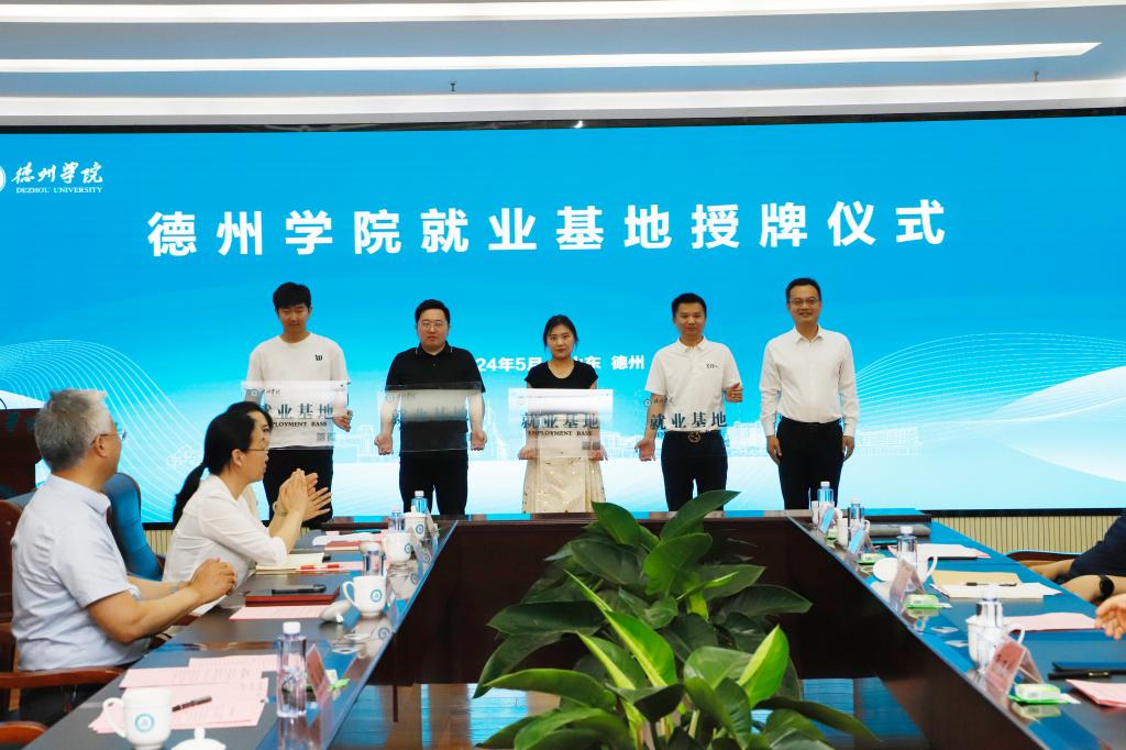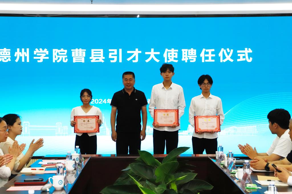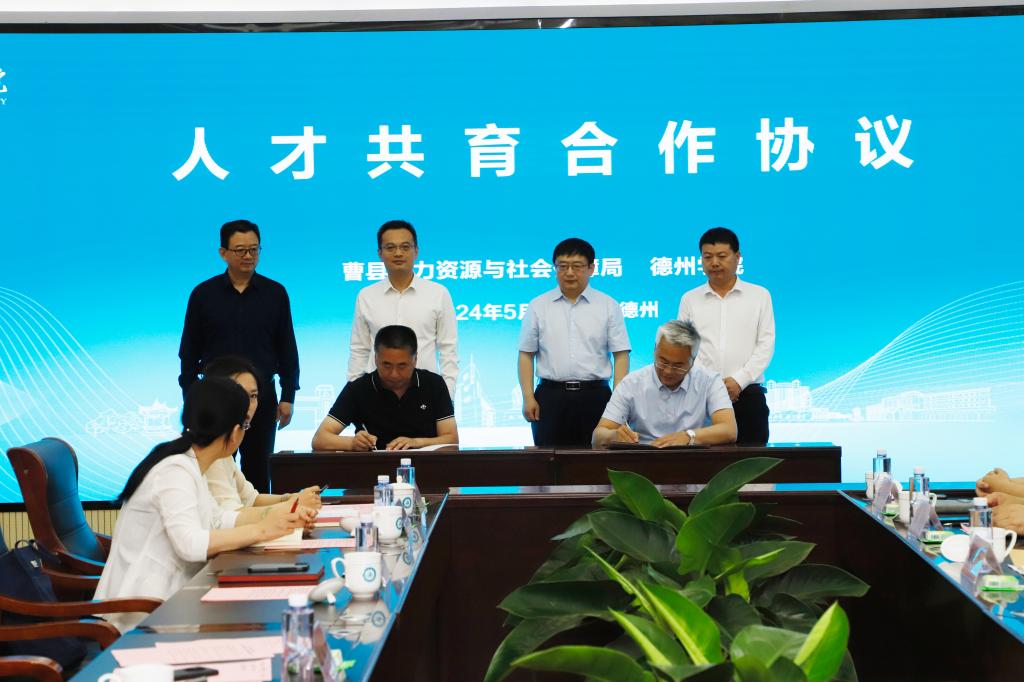 活动现场,赵广民为纺织服装学院三名曹县籍学生颁发了“曹县引才大使”聘任证书。曹县人社局分别与学校就业指导处、合作发展处共同签订了《人才共育合作协议》和《产教融合合作协议》。蒋涛涛向山东一山一水艺术文化传播有限公司、曹县雨涓阁商贸有限公司、曹县辰霏服饰有限公司曹县银香伟业集团公司等企业的负责人颁发了“122cc太阳集成就业基地”铭牌。