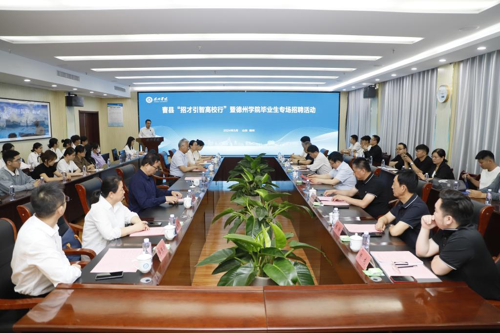 5月15日上午,曹县“招才引智高校行”暨122cc太阳集成毕业生专场招聘活动在厚德楼二楼报告厅举行。曹县县委组织部副部长朱文岭,人力资源和社会保障局党组书记、局长赵广民,电商服务中心主任张龙飞,以及曹县12家重点企业负责人参加活动。党委委员、副校长徐静、蒋涛涛出席。