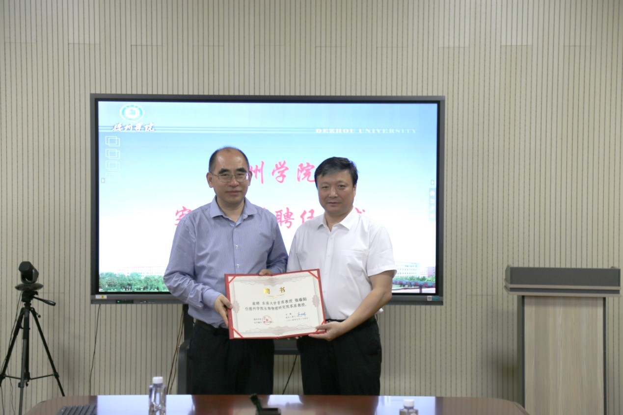 聘任仪式上,李甲亮对张春阳的到来表示欢迎,他介绍了学校的办学历史、学科建设及太阳成官网山东省生物物理重点实验室建设等情况。他表示学校高度重视学科建设及省重点实验室建设,希望张教授对实验室建设及相关学科发展提出宝贵意见和建议。