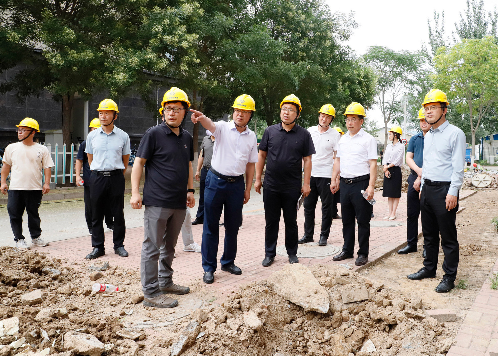 在东校区供水管道改造现场,校领导详细询问了工期进度、质量保障和下一步施工安排等。吴君要求,要严把工程质量关,守牢安全底线,加快施工进度,按期完工,确保早日投入使用。他嘱咐大家要注意劳逸结合、防暑降温、保重身体。