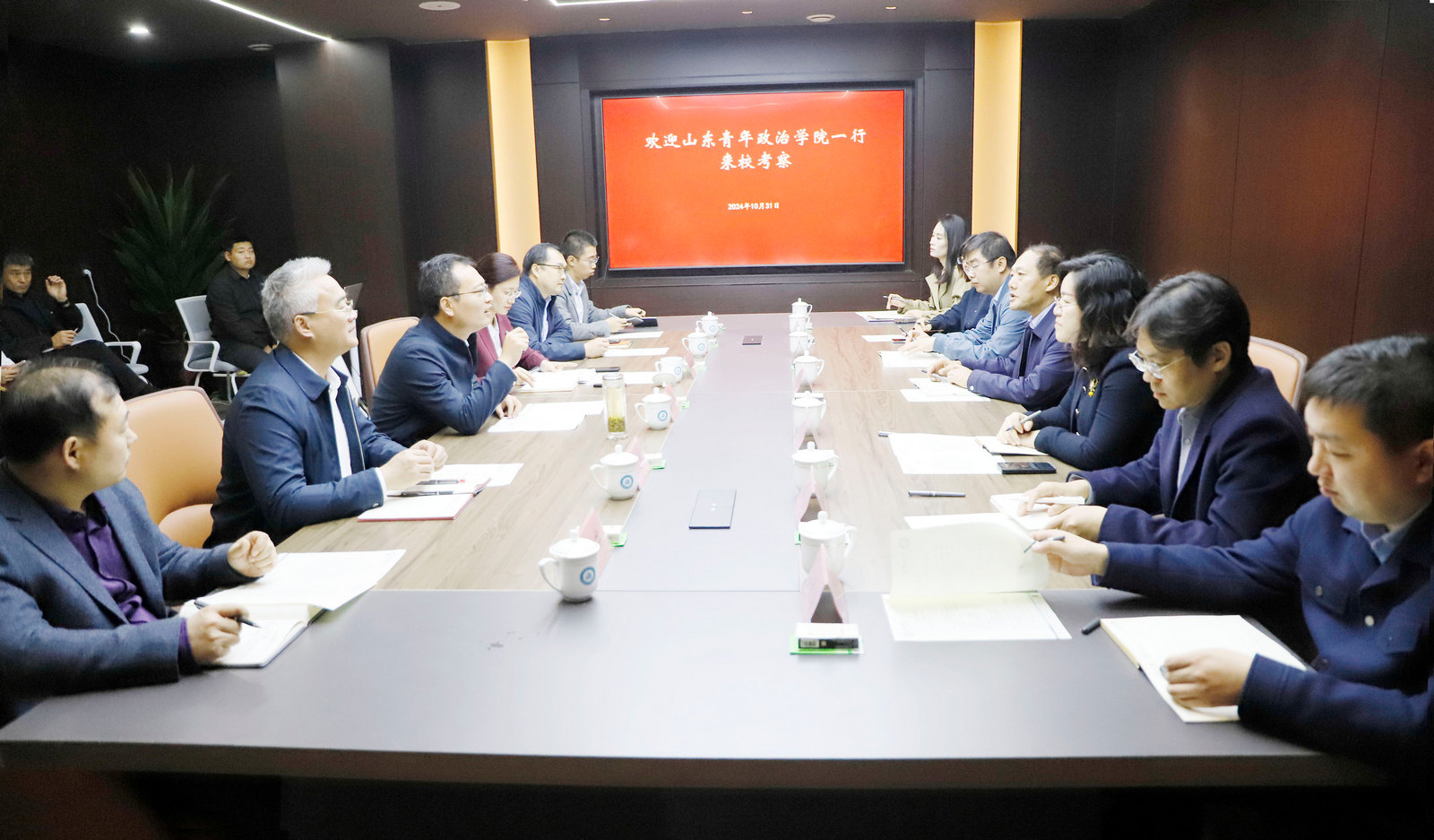 10月31日,山东青年政治学院党委委员、副院长于秀国一行来校考察交流。校党委书记吴君会前会见于秀国一行,校党委委员、副校长蒋涛涛陪同参加考察交流。