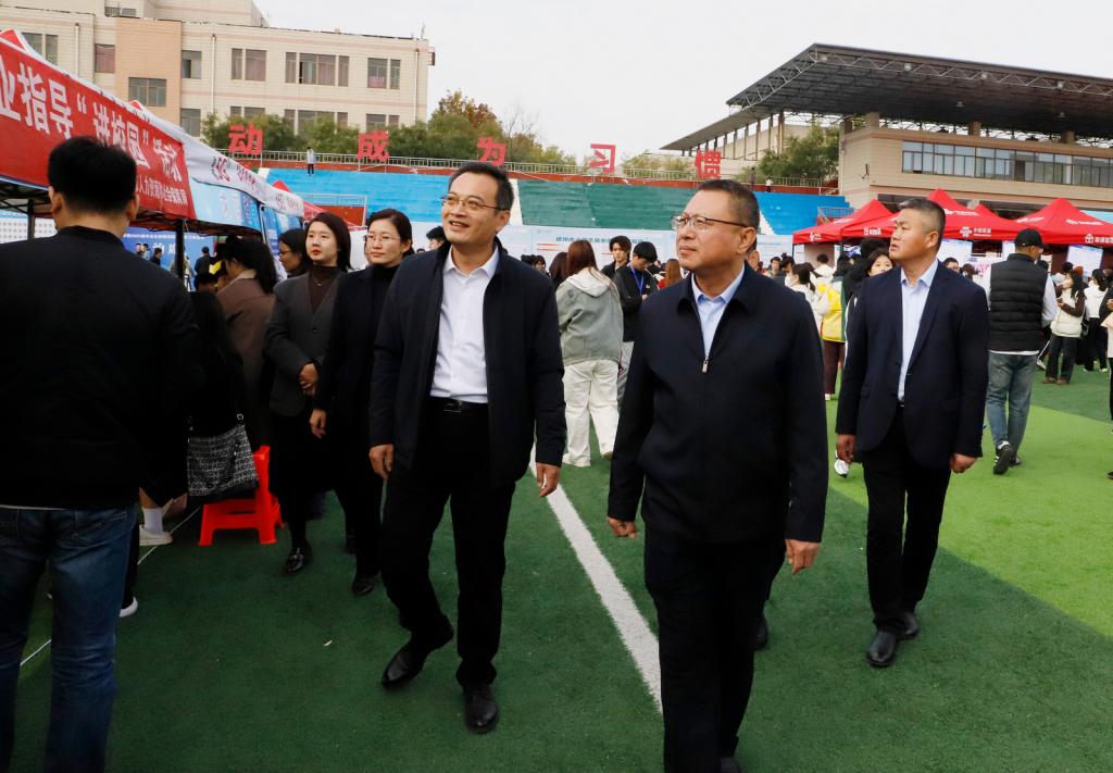 11月9日,2025届毕业生校园招聘会暨实习双选会在太阳成官网体育场隆重举行。学校党委书记吴君,党委委员、副校长蒋涛涛来到招聘会现场指导工作,并与用人单位深入交流。