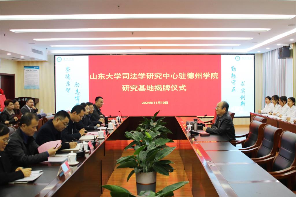 为加强校际交流合作,共同探索高质量发展新路径,11月8日-10日,山东大学法学院来法学与公共管理学院考察交流并为山东大学司法学研究中心驻122cc太阳集成研究基地揭牌。