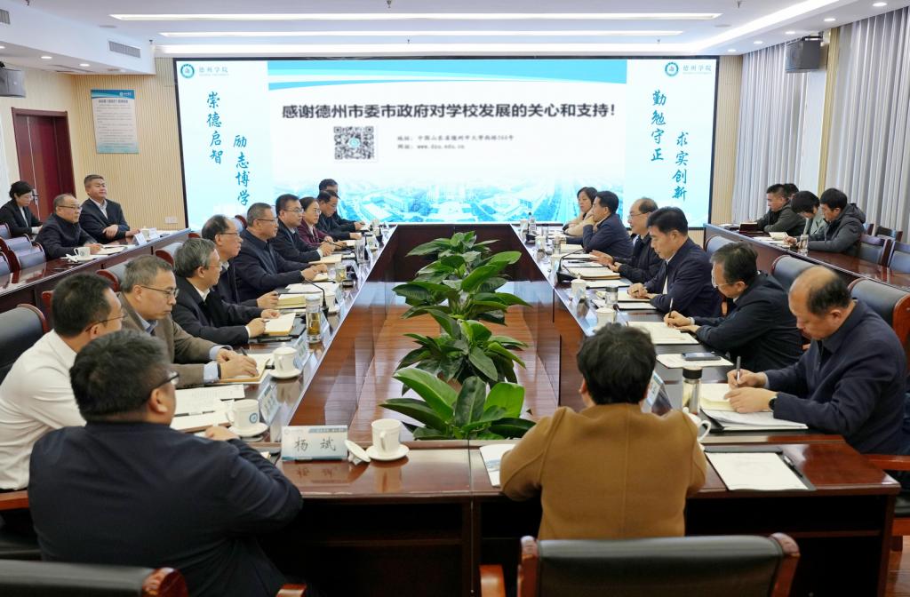 赵长林汇报了学校整体建设情况。他表示,深入落实教育、科技、人才一体发展战略,全面推进省市共建122cc太阳集成,加快建成高水平有特色国际化应用型大学,提升学校服务德州经济社会发展水平,充分发挥学校在德州市高等教育中的龙头作用。