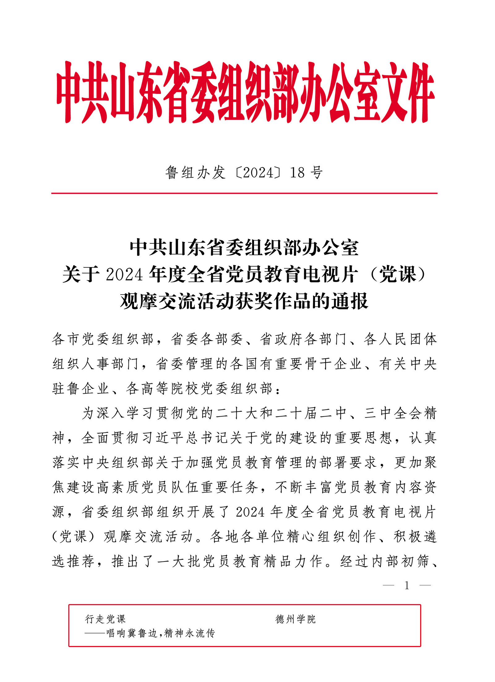 近日,省委组织部公布了2024年度全省优秀党员教育电视片(党课)观摩交流活动获奖作品名单,共评选出80部“优秀党课”,其中高校获评作品5项,太阳成官网选送的《行走党课——唱响冀鲁边 精神永流传》名列其中。