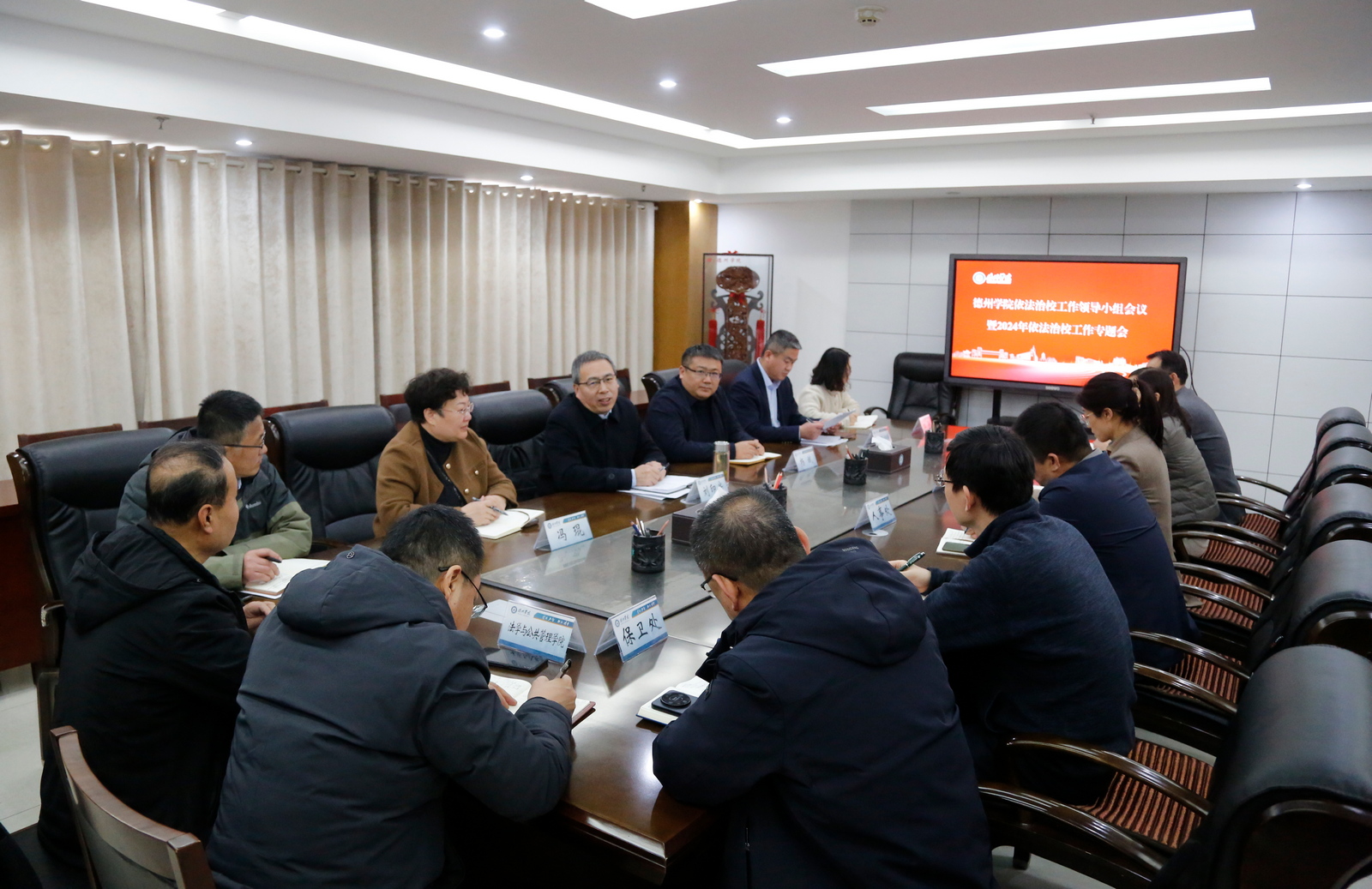 12月30日,学校在第一会议室召开依法治校工作领导小组会议暨2024年依法治校工作专题会。学校党委委员、副校长刘印房主持会议并讲话。学校依法治校工作领导小组成员单位主要负责人参加会议。