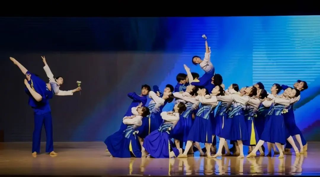 晚会分为四大篇章,以“陌上·蓄势·萌发·生花”为主线,展现学子从青涩到成熟的艺术蜕变。开场群舞《贰壹》由39名舞者以流畅身韵技巧拉开帷幕,用肢体语言描绘大学时光的憧憬与热爱;《芭蕾基训组合》《中国古典舞基训组合》则通过扎实的功底训练,呈现同学们对艺术信念的坚守。