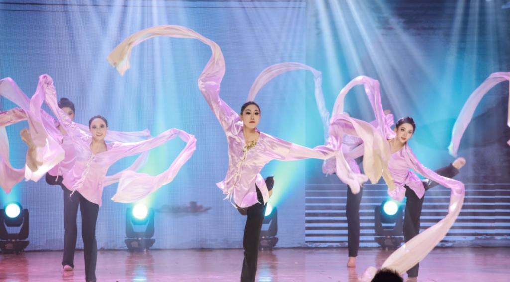 在民族舞表演中,非遗元素与多元文化交织绽放。《胶州秧歌》《鼓子秧歌》以质朴舞步重现山东民间艺术魅力;《敦煌舞组合》将千年壁画化为流动舞姿,再现丝路文明;《德州地域民间组合》特邀平均年龄78岁的老艺人现场演奏,与青年舞者共谱“非遗传承”的薪火乐章。蒙古族、维吾尔族等民族舞蹈则通过豪迈或灵动的风格,诠释多元文化交融的生机。