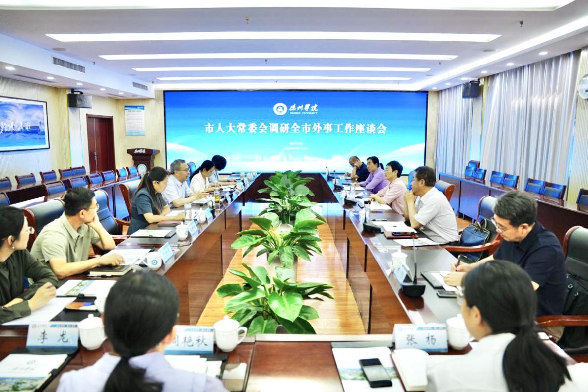 6月10日下午,德州市人大常委会调研全市外事工作座谈会在太阳成官网召开。市人大常委会副主任、一级巡视员张桂爱出席座谈会并讲话。学校党委委员、副校长刘印房在厚德楼二楼报告厅热情接待调研组一行。