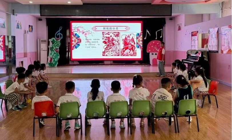 志愿服务队将中华优秀传统文化作为活动的重要一环,通过具象化、沉浸式的课程设计,让孩子们在动手实践中触摸文化根脉,涵养文化自信。在幼儿园,“薪火传九州,同拼中国梦”课程中,孩子们借助磁力拼插拼接中国地图,筑牢国家认同意识;“绘出最美瓷器”环节,志愿者详解瓷器文化,指导孩子设计传统纹样,感受东方美学魅力。面向社区学生,“指尖上的中国建筑”活动则通过讲解故宫、四合院等传统建筑,发放彩泥让孩子搭建“创意小屋”,将建筑文化从书本走向指尖。此外,端午文化主题课程、非遗剪纸工坊等活动,也让传统节日文化和非遗技艺在孩子们心中生根发芽。