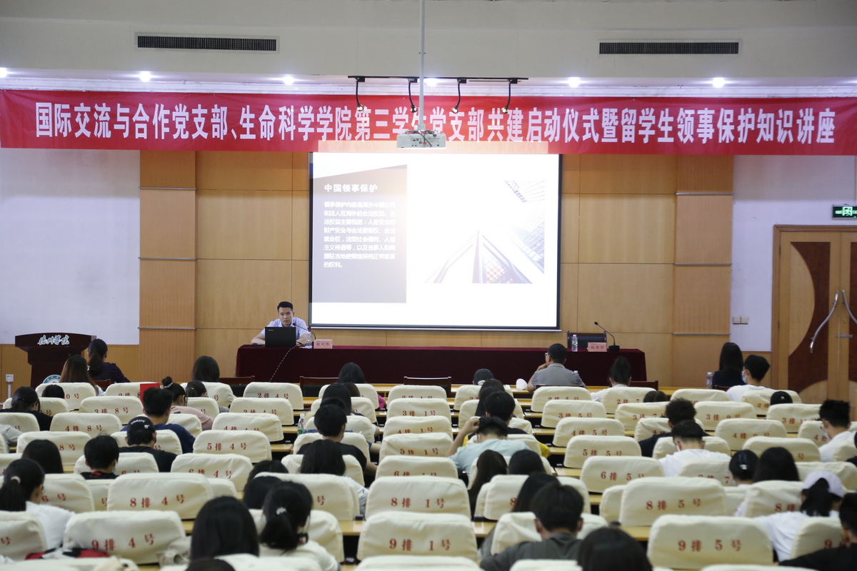 为切实加强党对中外合作办学的领导,促进党建工作与业务工作相互融合、相互促进,实现党支部在结对共建中达到优势互补、共同提高,6月13日,学校在四楼报告厅举行国际交流与合作党支部、生命科学学院第三学生党支部共建启动仪式暨留学生领事保护知识讲座,副校长李永平出席启动仪式并致辞。