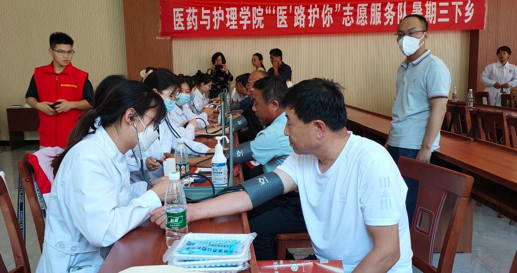 义诊现场,志愿者设置了血压测量和口腔检查等服务咨询点,为村民百姓民现场量血压、检查口腔等,耐心解疑答惑、测量健康指标,提出日常预防、保健方案及治疗建议,对村民进行健康监测,加强村民对疾病和慢性病的认识和防范,同时提升护理、口腔等专业学生的理论实操技能。